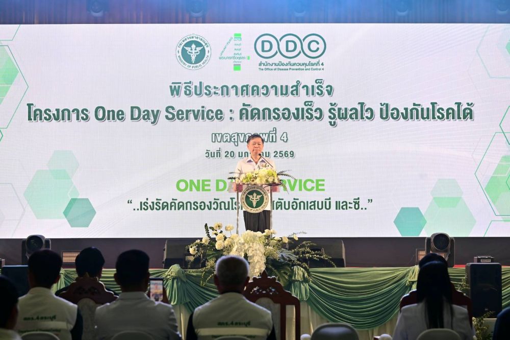 อธิบดีกรมควบคุมโรค เปิดโครงการ “One Day Service : คัดกรองเร็ว รู้ผลไว ป้องกันโรคได้ เขตสุขภาพที่ 4” มุ่งค้นหาผู้ป่วยวัณโรค และโรคไวรัสตับอักเสบ บี และ ซี เชิงรุกในชุมชน เพื่อให้กลุ่มเสี่ยงและผู้ที่มีอาการเข้าถึงการตรวจวินิจฉัยและการรักษาตั้งแต่ระยะเริ่มต้น ช่วยตัดวงจรการแพร่กระจายเชื้อ ลดความรุนแรงของโรค และลดอัตราการเสียชีวิต